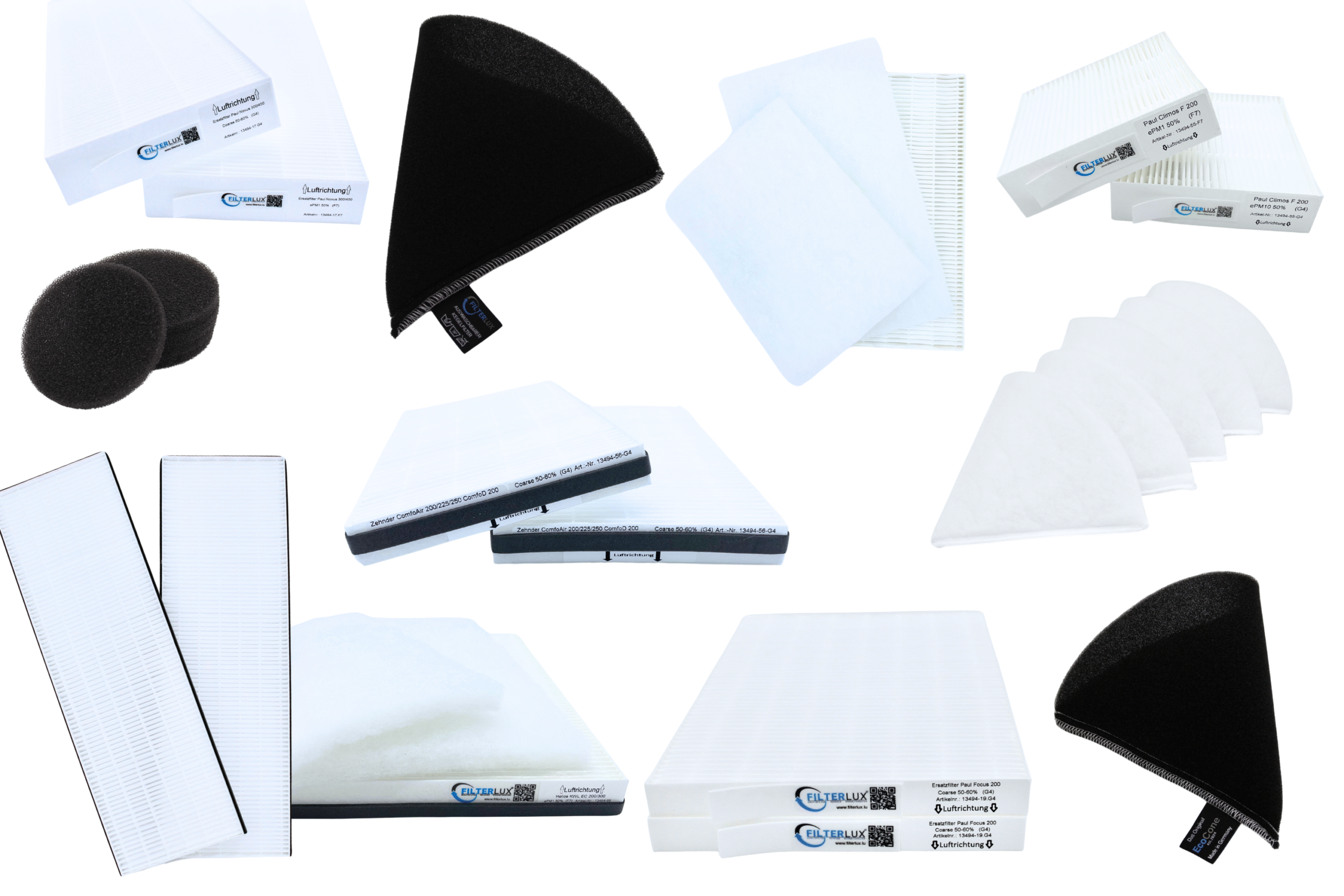 Filtres de remplacement haute performance pour les installations telles que Paul, Zehnder, Helios, Brink et SystemAir
